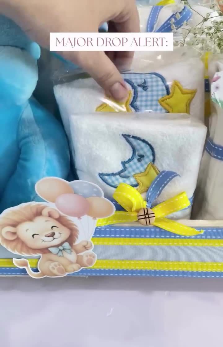 I design every baby boy hamper to be a grand welcome for your little prince. These gifts are curated with charming themes like jungle safari, classic teddy bears, or sporty motifs, and can be personalized with his name on everything from the crate to the towels.