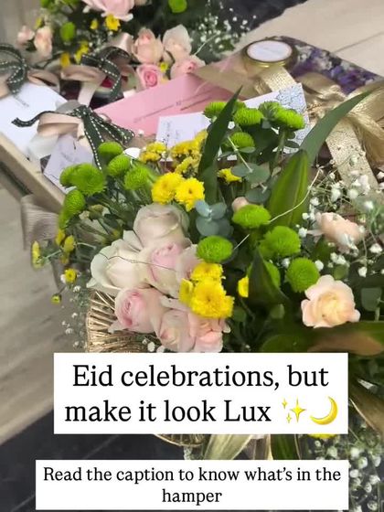 I curate sophisticated hampers for Eid, blending traditional motifs with luxury products. My service includes creating bespoke gifts with items like gourmet dates, artisanal sweets, scented candles, and fresh flowers, all presented in beautiful packaging like metal crates and acrylic boxes to celebrate the occasion.
