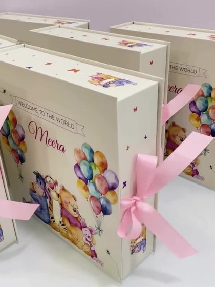 I create charming, themed hampers for baby announcements, baby showers, and kids' birthday parties. From personalized Winnie the Pooh boxes and safari-themed return gifts to adorable train-shaped hampers, I handle bulk orders with a creative and personal touch.