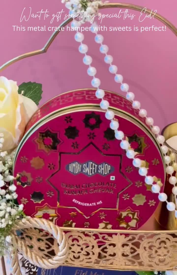My Eid hampers are designed to make your celebrations feel truly luxurious and special. I curate them with festive treats like Dubai kunafa and premium sweets, presented in elegant glass boxes, metal crates, and crescent-adorned trays.
