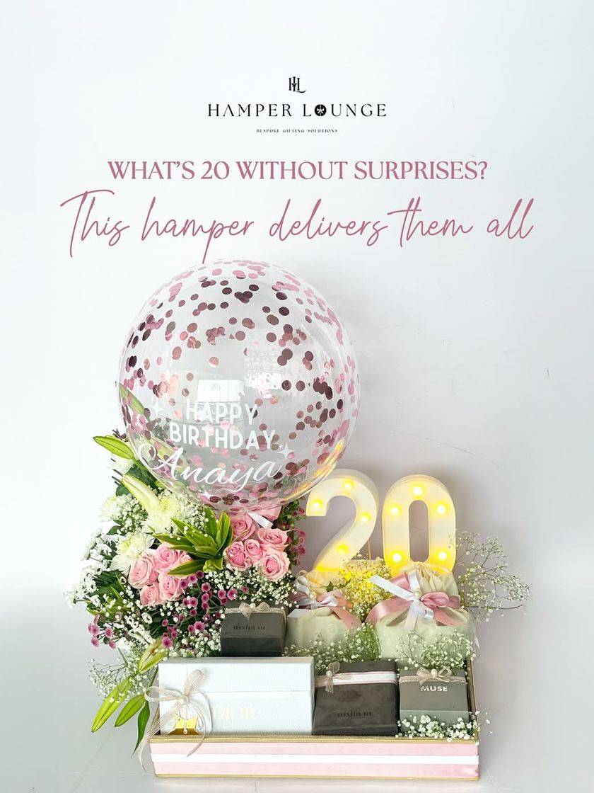 I design bespoke birthday hampers for all ages, from a baby's first birthday to a grand 60th celebration. Each hamper is fully personalized with themes, names, photos, and a curated mix of gifts like gourmet cakes, flowers, balloons, and their favorite treats to make the day truly memorable.