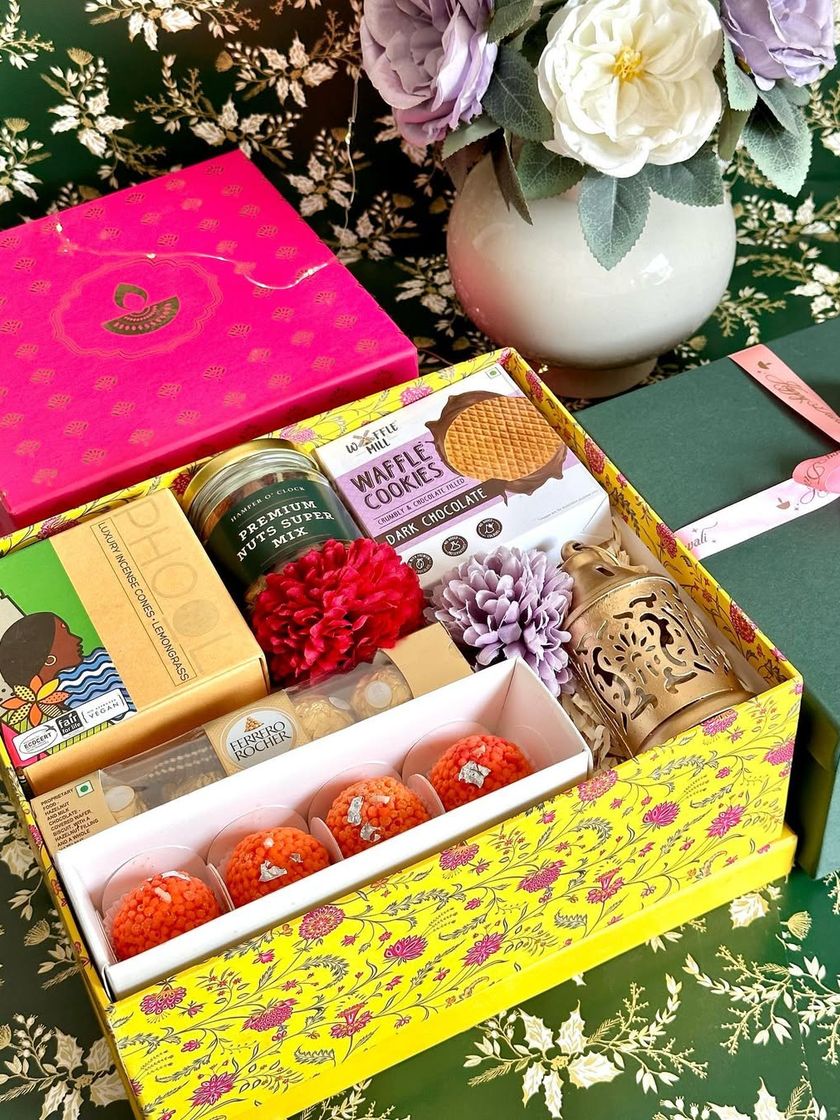 Celebrate the festival of lights with our thoughtfully curated Diwali hampers. We offer a wide variety of options, from traditional cane baskets filled with diyas and sweets to modern, elegant boxes with gourmet treats and home decor, all customizable to fit your budget and style.