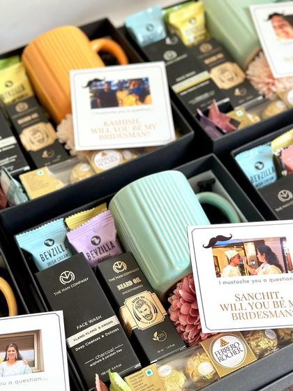 Let's not forget the guys! I design sleek and practical gift boxes to propose to your groomsmen and bridesmen. Think personalized flasks, premium grooming kits, and maybe a miniature of their favorite spirit to get the celebration started.