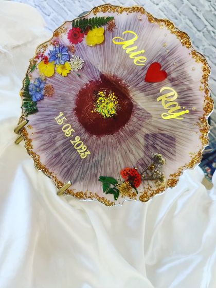 I create custom resin art, specializing in personalized decor, spiritual pieces, and preserving wedding memories. I also share my passion for the craft through one-on-one workshops.