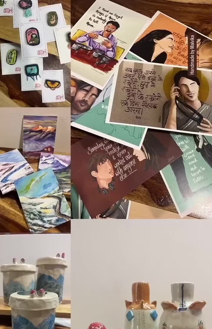 While I love making embroidered accessories, my creative world also includes other handmade goods. Here is a glimpse of my hand-painted ceramic pieces, art prints, and postcards from various art markets.