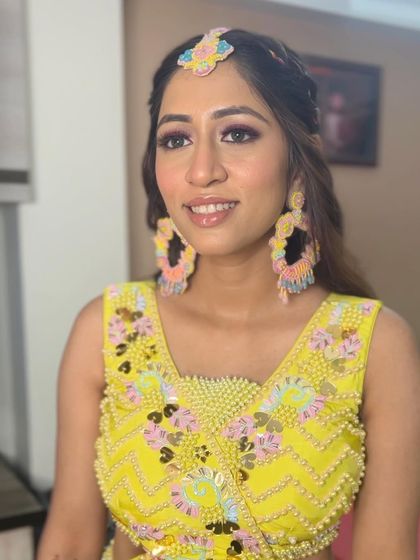 Haldi and Mehendi ceremonies are full of joy, color, and fun. For these events, I create fresh, dewy makeup looks that are vibrant and long-lasting. This gallery showcases colorful outfits, playful hairstyles with floral accessories, and makeup that gives you that perfect "happy chaos" glow.