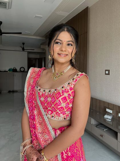 I specialize in creating stunning bridal looks for destination weddings, combining traditional Indian elements with contemporary trends. My expertise includes glass skin techniques, glossy finishes, and glitter details that photograph beautifully in any setting.