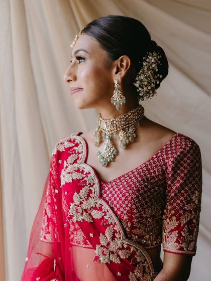 My comprehensive bridal package includes expert hair styling and draping by my talented team. From elegant buns adorned with fresh flowers to glamorous open waves and intricate traditional braids, we do it all. We also ensure your saree, lehenga, or dupatta is draped perfectly and securely, so your entire look is flawless from head to toe.