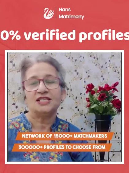Namaskar, main Mrs. Neelam Dewan, Hans Matrimony ki director. 25 saal se yahi kaam karti aa rahi hoon. Pehle parivaar milke rishte karwa lete the, ab sab kuch online ho gaya hai aur parents bahut pareshan rehte hain. Bahar bahut fake matrimonies bhi hain, bas paisa kamane ke liye. Isiliye maine Hans Matrimony shuru kiya - yahan sab kuch genuine, verified, aur family jaise mahsoos hota hai. Mera ek hi maksad hai: aapki tension kam karna aur aapke bachchon ke liye sahi jeevansathi dhoondhna.