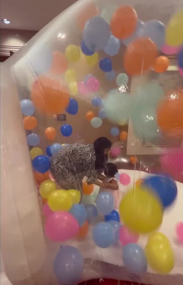 This is my most enchanting offering, a transparent inflatable dome that I fill with balloons. Kids can go inside for a unique, bubbly play experience, and I can customize the balloon colors to perfectly match your party's theme.
