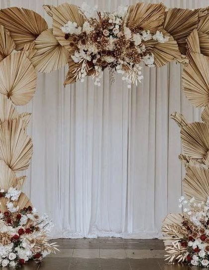 - Boho wedding backdrop with pampas grass and earthy tones for a free vibe