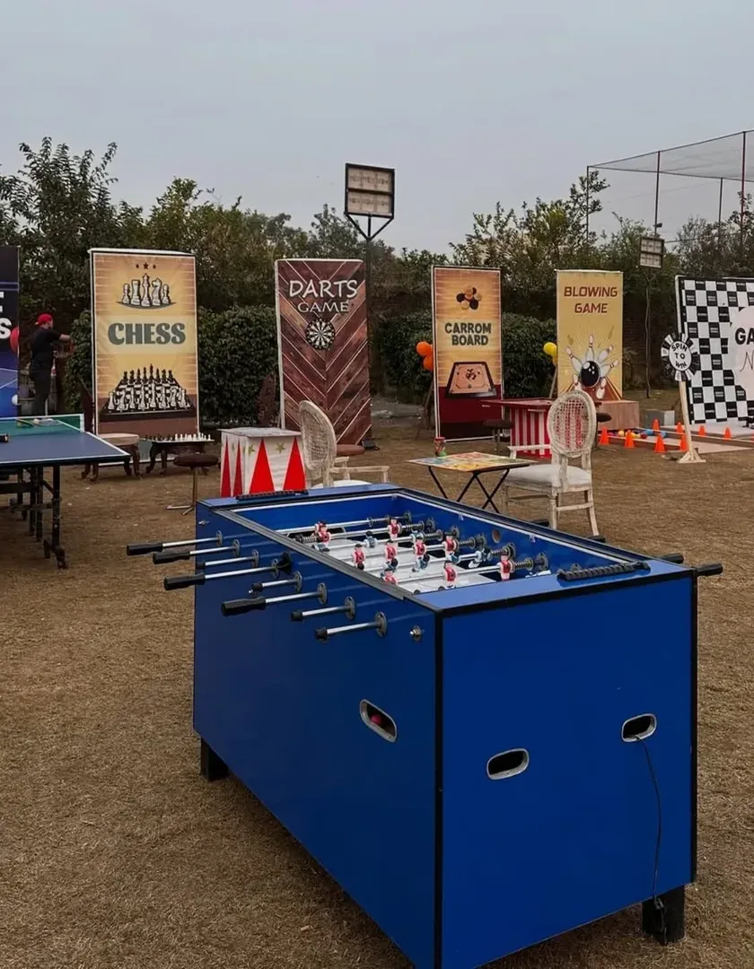 We offer a wide range of game rentals to entertain guests of all ages at any event. Choose from classic carnival games like ring toss, giant board games like Snakes and Ladders, or sports setups including table tennis, foosball, and basketball.