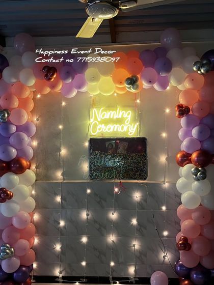 Bring your child's naming ceremony to life with a special theme. I can create setups based on popular characters like Cocomelon, themes like Krishna or Radha, or magical fairy and princess concepts, complete with character cutouts and matching decor.