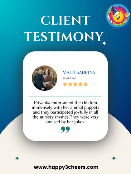 My greatest joy comes from seeing happy families and hearing about their wonderful experiences. Here are a few words from clients who trusted me with their special celebrations, including a puppet show for comedian Kapil Sharma's daughter.