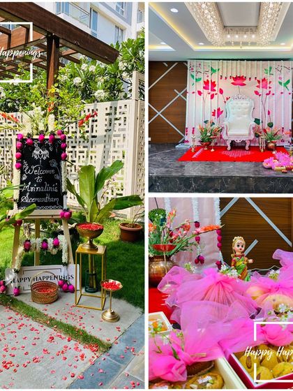We handle all baby shower and maternity ceremony decor, from boho balloon arches to traditional Seemantham setups with jasmine garlands and brass lamps, so you can focus on celebrating.