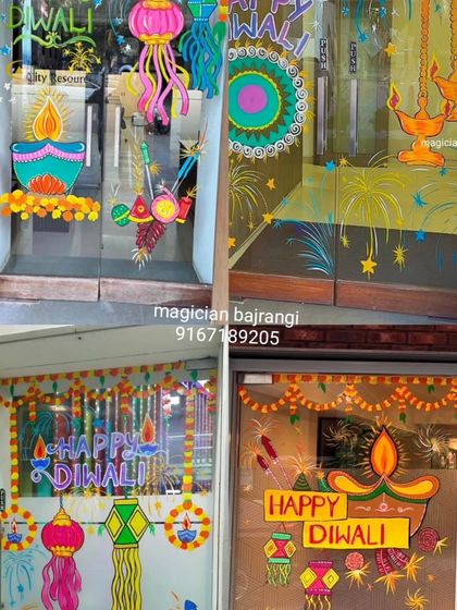 I specialize in creating vibrant festive atmospheres through traditional and modern decoration techniques. My services include Diwali and Christmas glass paintings featuring motifs like diyas, lanterns, and Santa Claus. For Ganpati celebrations, I create elaborate setups with floral arrangements, star-patterned backdrops, and hanging bells.