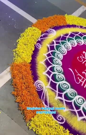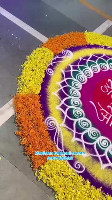 I create beautiful, intricate rangolis for entrances and event spaces using colored powders and fresh flower petals. From classic peacock designs to personalized rangolis for ceremonies like a Dohale Jevan, I can make a stunning first impression.