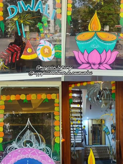 I specialize in creating vibrant, temporary art directly on glass windows and doors for shops, offices, and homes. My hand-painted designs for festivals like Diwali, Dussehra, and Christmas are perfect for adding a unique, eye-catching touch to your space.