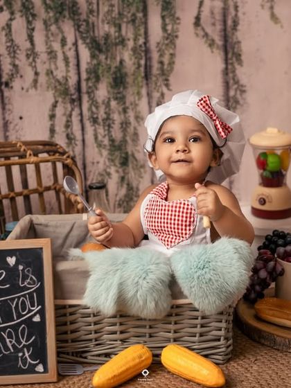 Everything happens in my Delhi/NCR studio. It’s calm, clean, and just right for little ones. I design the whole thing – you just sit back, relax, and watch your baby do their thing.