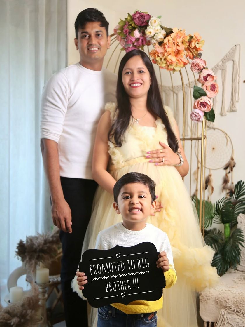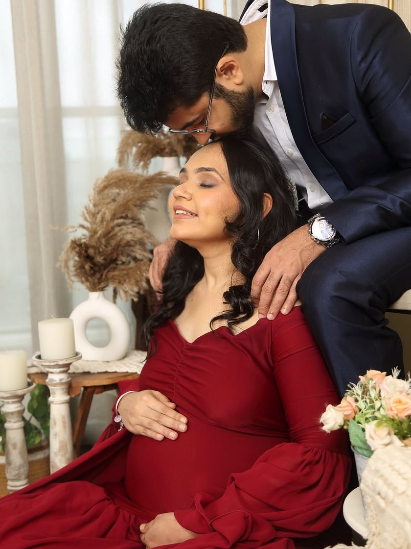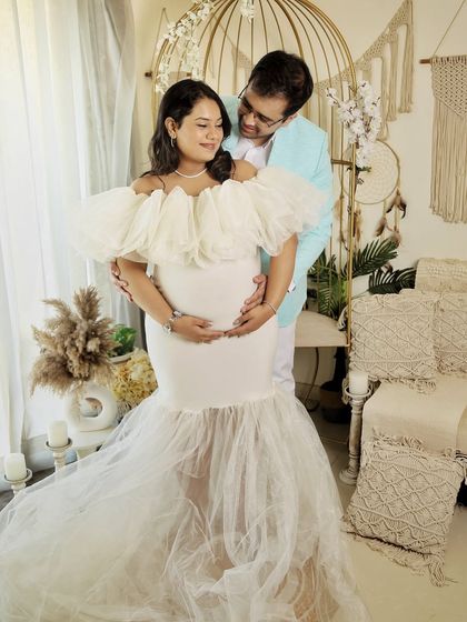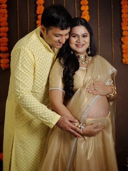 For a touch of cultural heritage, I offer traditional Indian themed maternity shoots. We use beautiful props like marigold flowers and brass lamps, paired with elegant attire like sarees, to create stunning and meaningful portraits.