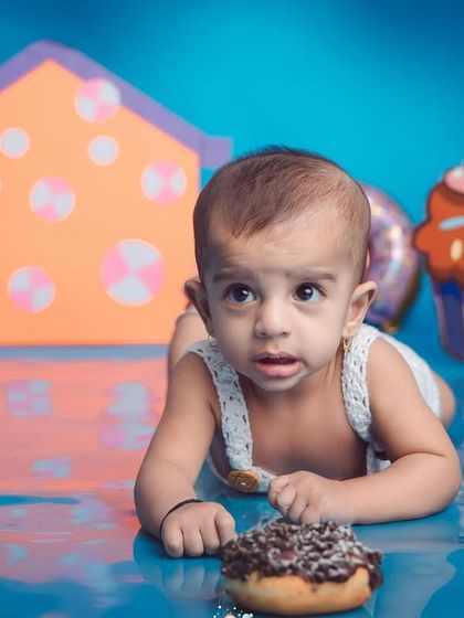I handle the setup, props, and outfits for cake smash sessions and capture your baby’s real reactions from clean portraits to messy cake fun and splash clean-up.