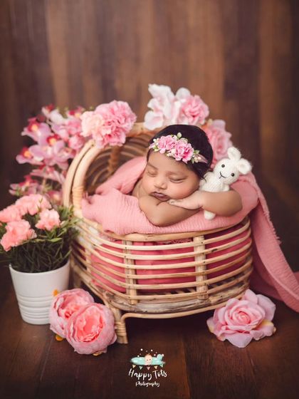 Sessions are meticulously planned with themed props and soft lighting to ensure your baby's comfort. I use professional equipment and post-processing techniques to enhance the natural beauty of each image.