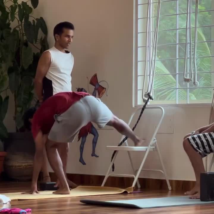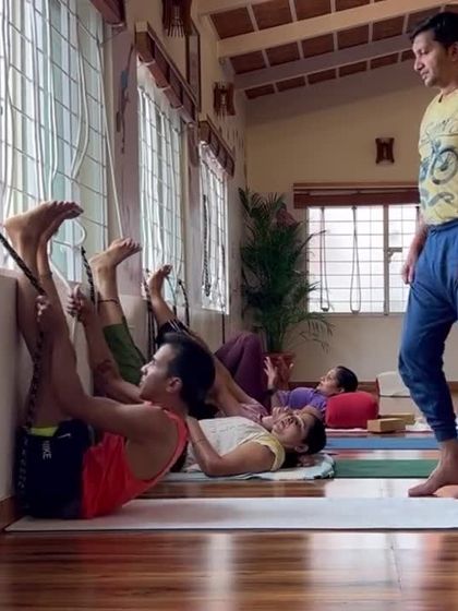 Props are not a crutch; they are tools for precision and depth. We use the wall for alignment, ropes for traction and support, blocks for extension, and chairs to make complex poses accessible to every body, embodying the principle of intelligent yoga.