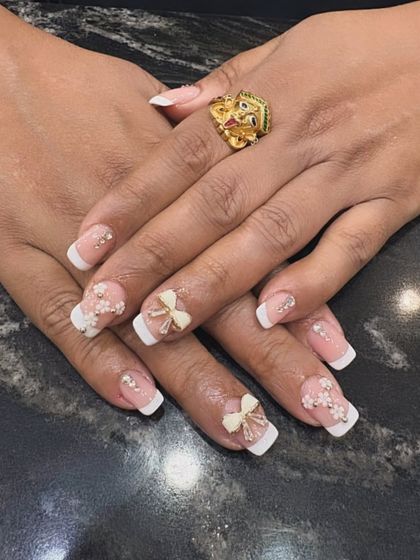 We do manicures, pedicures, gel and acrylic extensions, and custom nail art including bridal designs, with trending styles and strict hygiene.
