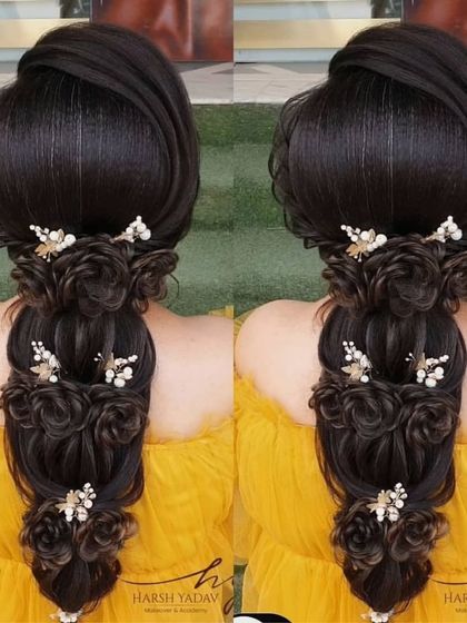 We specialize in creating intricate bridal hairstyles, from elegant buns and braids to sophisticated updos. Our styles are enhanced with decorative elements like pearls and flowers to complement your bridal look.