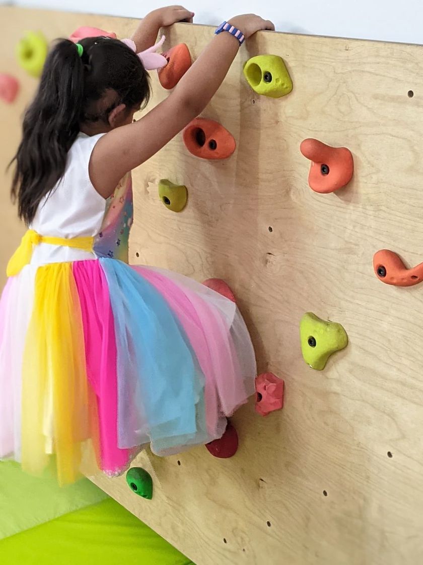 Learning extends to our play zone and garden. Children develop gross motor skills on our climbing wall and trampoline, and connect with the natural world by observing insects, birds, and our little vegetable harvest.