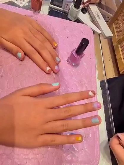 - Application of regular non-gel nail polish in kid-friendly colors.