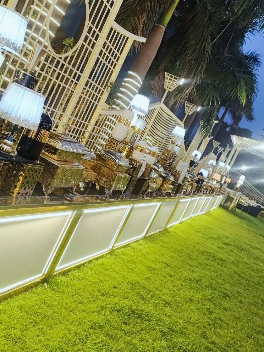 We believe presentation is just as important as the food itself. This gallery showcases our range of premium buffet setups, from modern LED-lit counters and rustic wooden carts to our signature gold and brass serving ware.