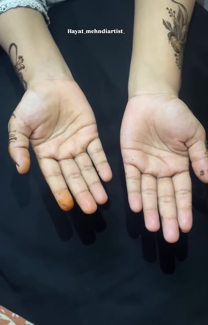 The final color is everything! I am obsessed with achieving the deepest, darkest natural henna stain. Here you can see the beautiful results of my high-quality, homemade paste after it has developed for a day or two.