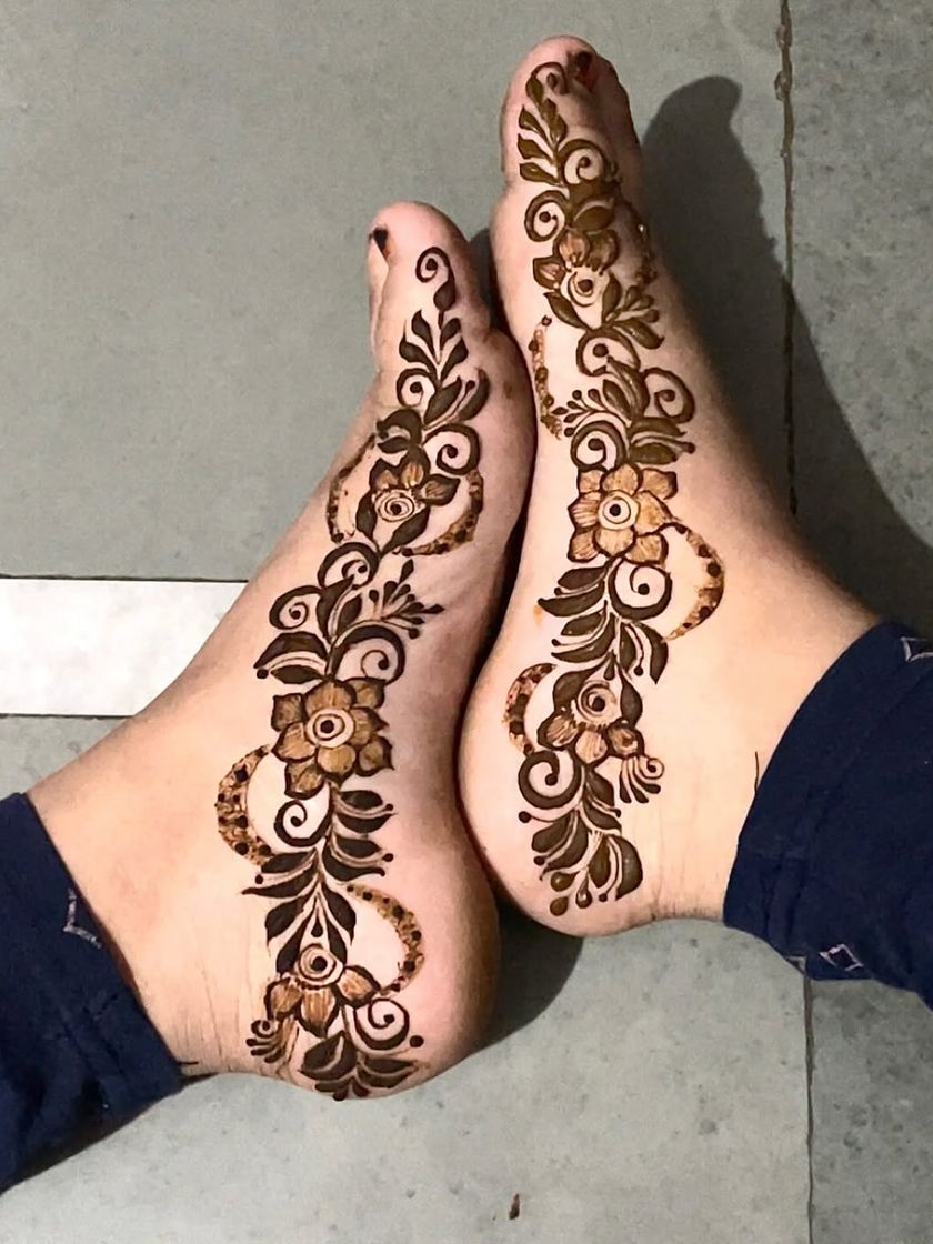 Don't forget the feet! I create beautiful and elegant mehndi designs for feet, from simple trails to intricate patterns that complement your hand mehndi. Perfect for brides or any special occasion.