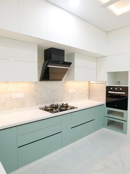 The kitchen is the heart of daily activity, and we design them for ultimate efficiency and style. We focus on the classic "kitchen triangle" for optimal workflow, using durable materials, smart storage, and modern finishes like high-gloss laminates and quartz countertops.