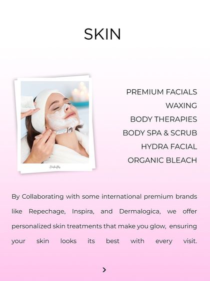 What We Do - Hair (color, keratin, balayage), makeup (bridal, party), skin (facials, d-tan), nails (extensions, art, mani-pedi).