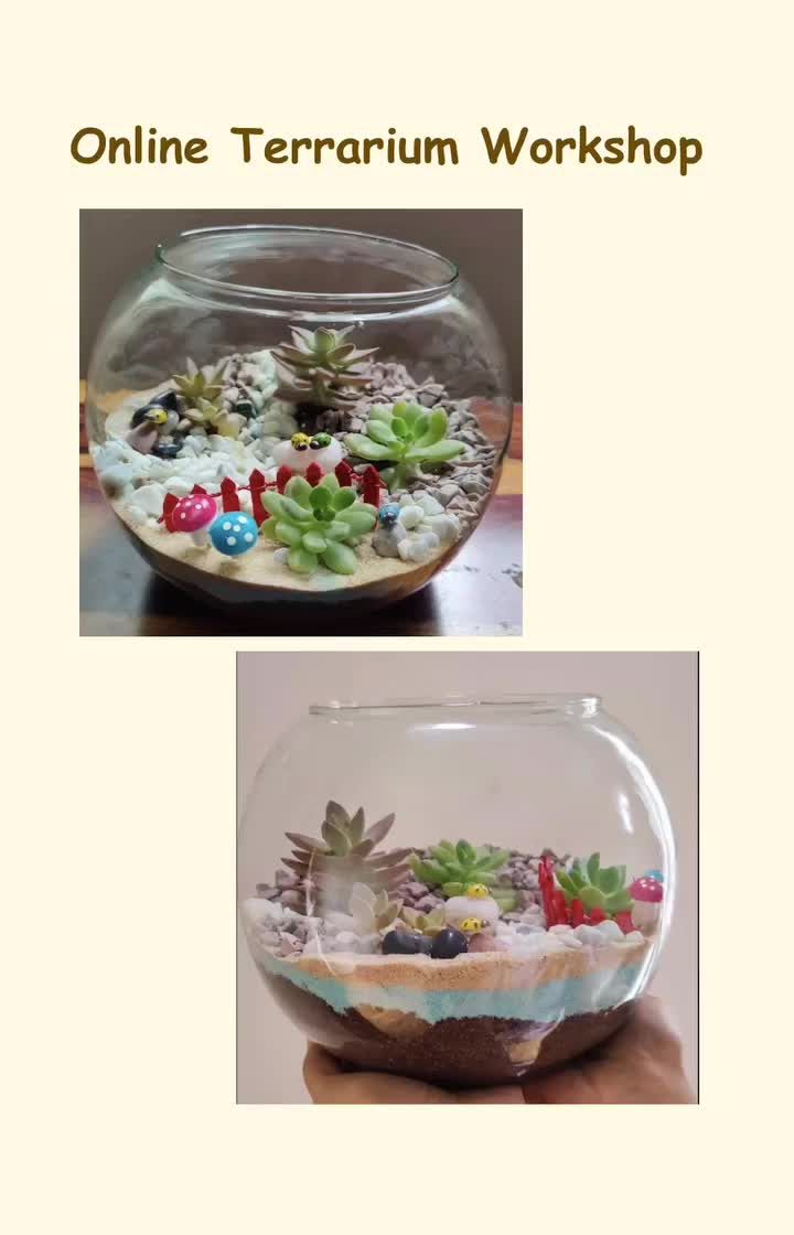 I provide everything you need to build your own beautiful terrarium. Each kit comes with a container, hand-picked plants, and all the layers like soil and pebbles, plus a simple guide and video help.