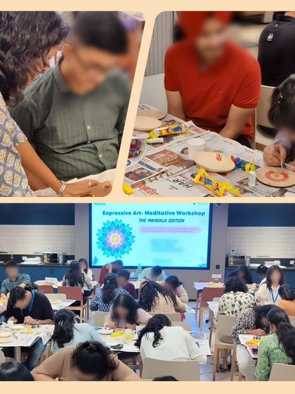 I design therapeutic art sessions to help teams de-stress, connect, and boost creativity. These workshops are available online or in-person at your office in Bangalore, Mumbai, or Delhi, and are tailored to improve team dynamics and mental well-being.