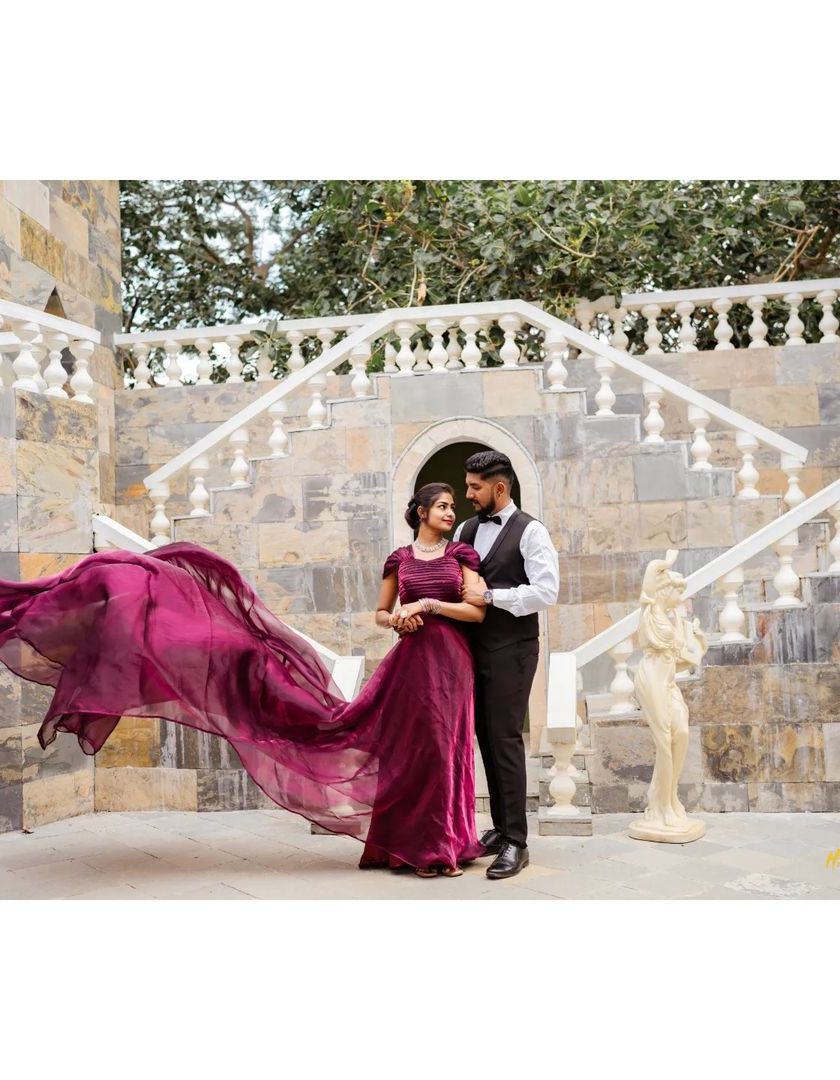 For couples who dream of a fairytale, we create scenes of pure drama and elegance. This collection features stunning gowns with flowing trails set against epic backdrops, turning your pre-wedding shoot into a cinematic love story. We focus on creating grand, breathtaking portraits that feel like they are straight out of a movie.