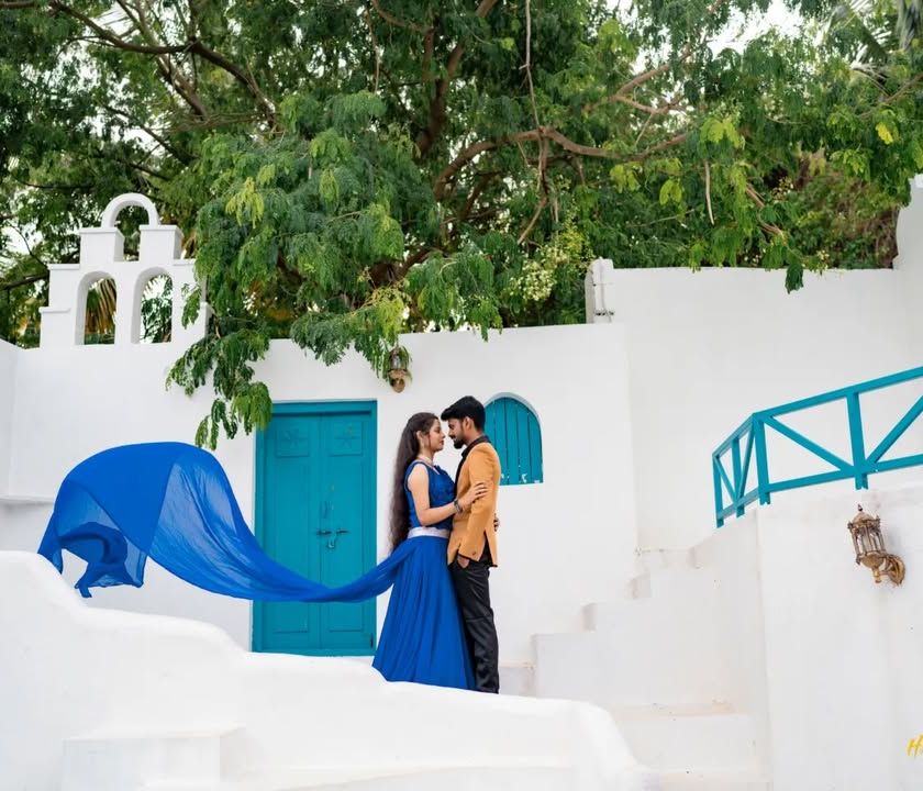 Dreaming of a Greek island getaway? We can create that iconic Santorini look right here in India. This collection showcases our ability to find and utilize stunning locations with white-washed walls, blue doors, and beautiful stonework to give your pre-wedding photos a bright, airy, and destination feel.