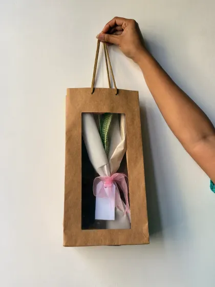 We make custom crochet hampers where you choose the flowers, add-ons, and message, and we handcraft everything to last much longer than regular gift hampers.