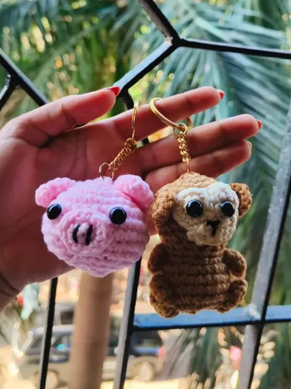 Carry a little friend with you everywhere. I create personalized keychains featuring cute animals like bees, monkeys, and pigs, which can be customized with name beads for a special touch. These are perfect as party favors or a unique gift for someone special.
