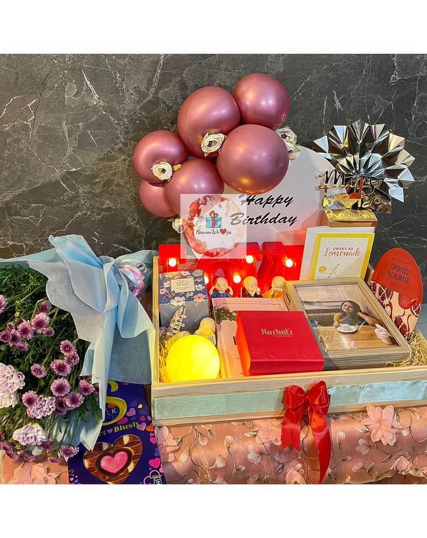 We create personalized birthday hampers for her, filled with everything she loves. Our hampers can include a mix of skincare products, cute soft toys, stylish accessories, gourmet snacks, and personalized items like framed photos or light-up initials.