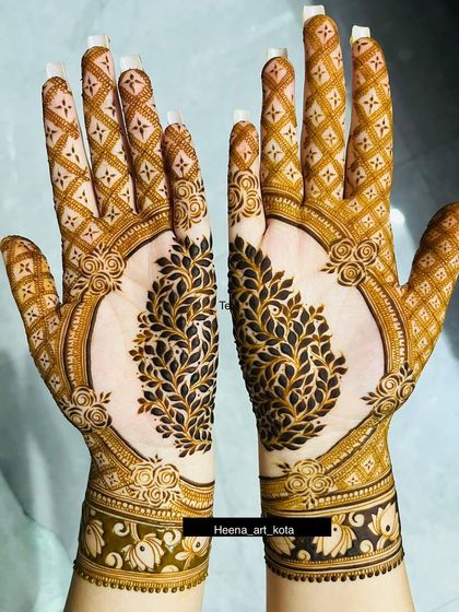 I design bridal mehndi that tells your story with custom portraits, themes, and natural henna, not just standard patterns.