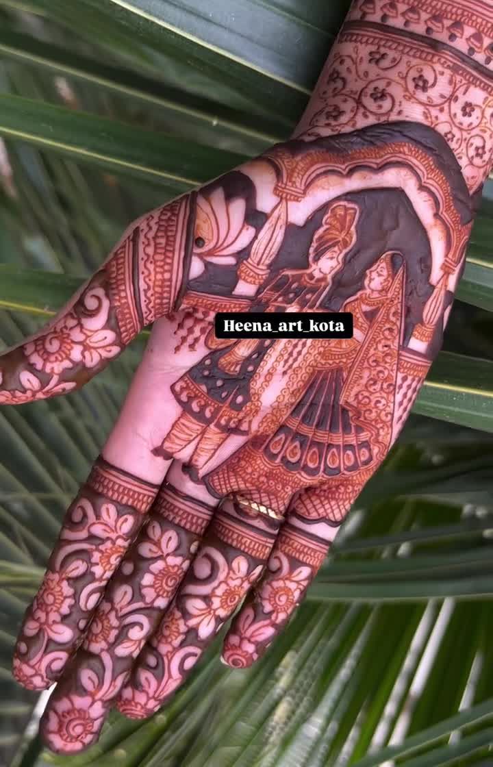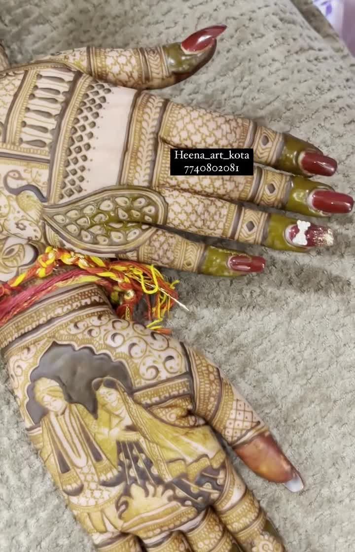 This is a preview of my signature work. It shows the intricate details, personalized stories, and the beautiful, dark stain I achieve with natural henna. This is the kind of unforgettable mehndi I love creating for my brides.