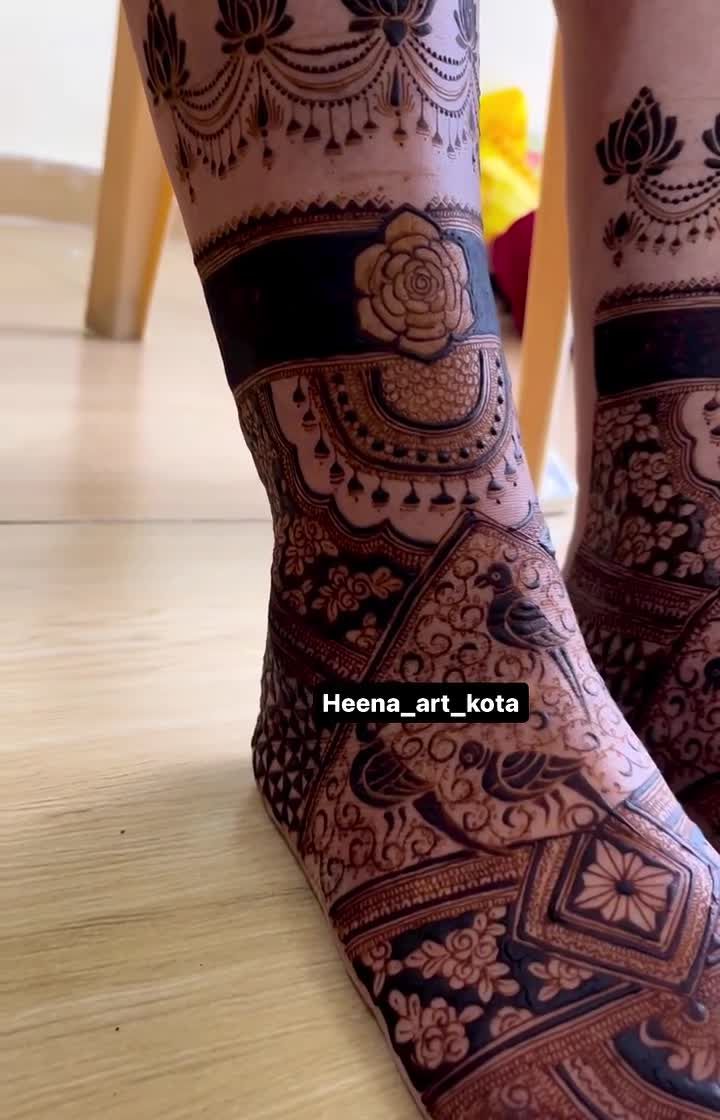 The bridal look is incomplete without beautifully adorned feet. I create a wide range of designs for the feet, from full coverage patterns that match the hands to simpler, more elegant styles. Popular motifs include swans, elephants, lotuses, and intricate bands that look like jewelry.