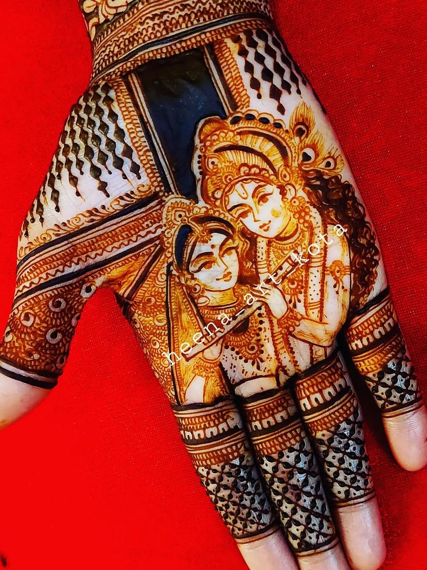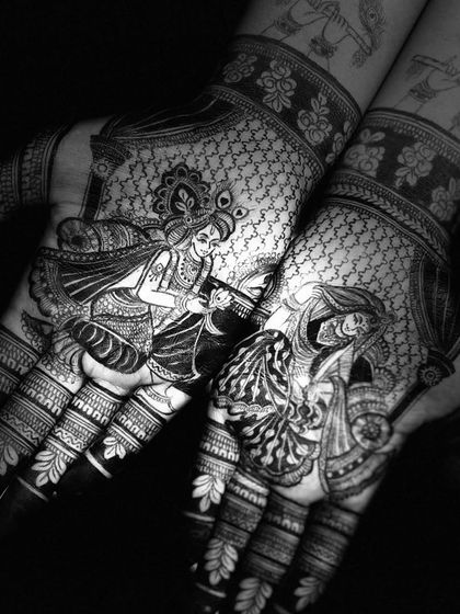 We have a special love for creating detailed portraits of gods and goddesses, especially Radha Krishna. These designs add a spiritual and artistic touch to your bridal or festive mehndi, showcasing a high level of skill and devotion.