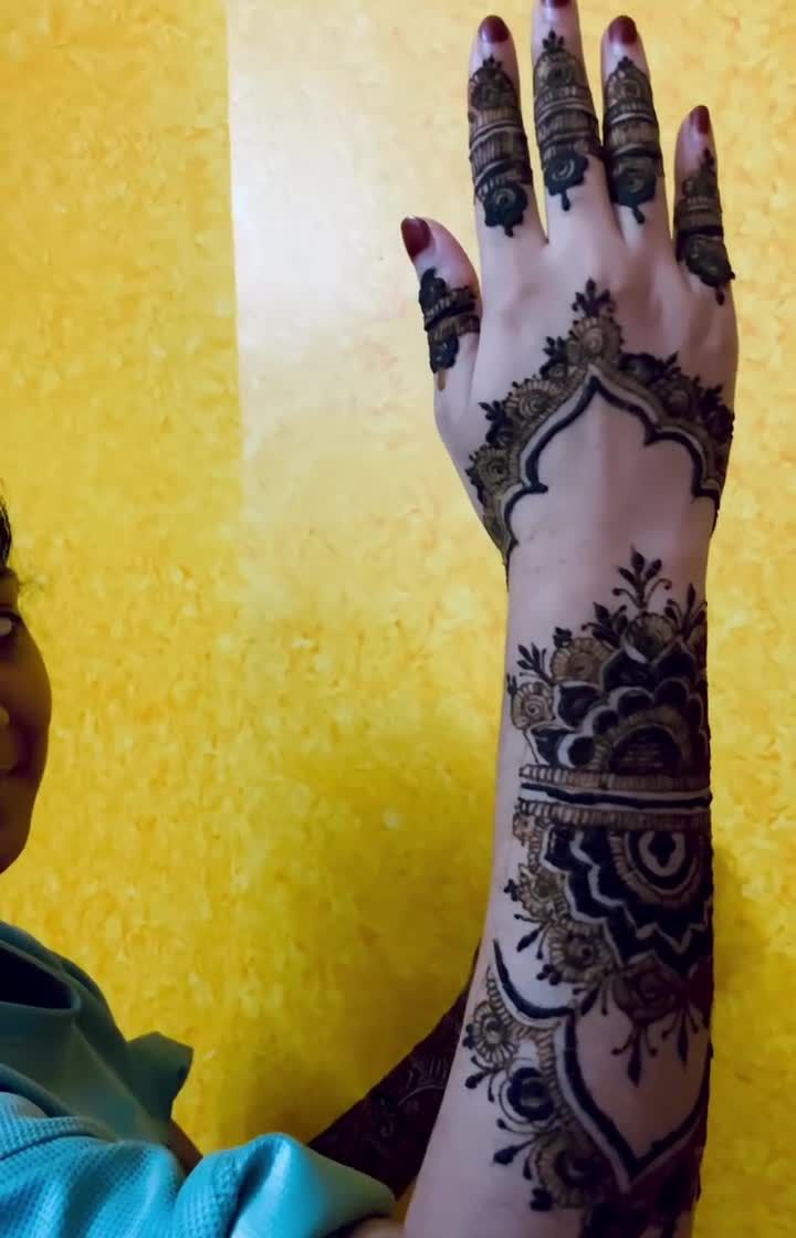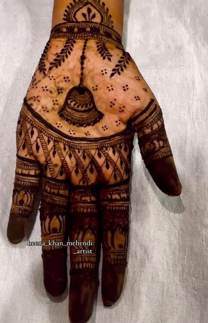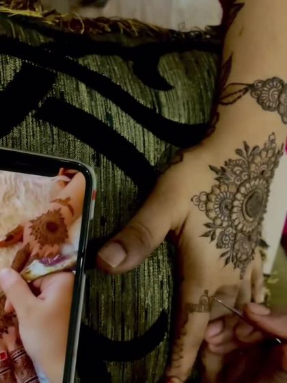 Why wear jewellery when your mehndi can be the accessory? I create designs that look like hathphool (hand harnesses), bracelets, and hanging jhumkas, perfect for a unique festive statement.