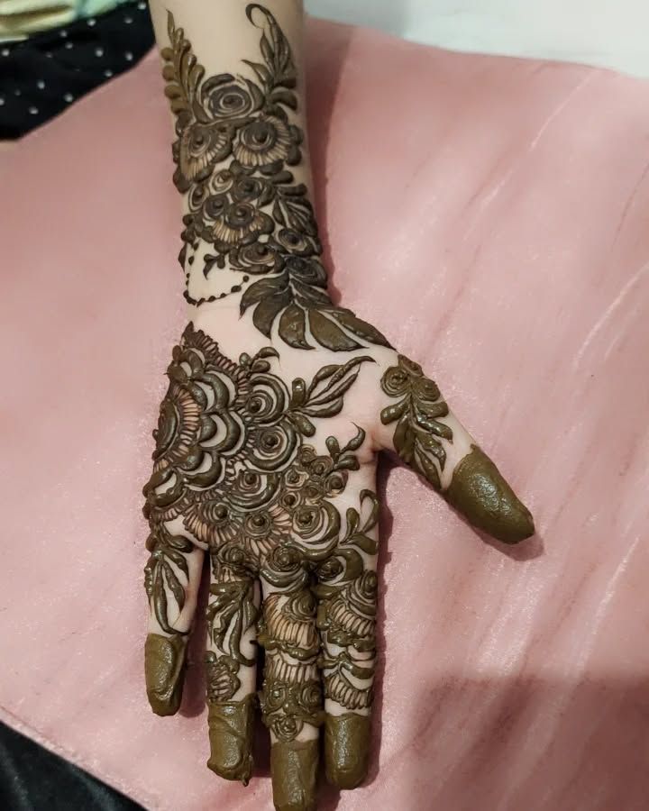 Perfect for parties and festivals, these designs feature bold floral vines and geometric patterns with open spaces for a modern look. I create everything from simple single trails to more elaborate Dubai-style patterns that cover more of the hand.