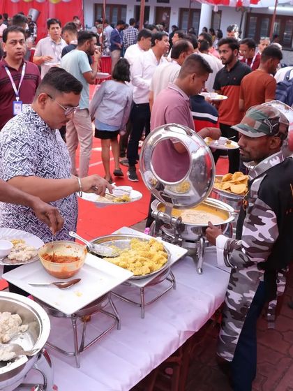 We specialize in luxury catering for intimate home gatherings, offering both packed meals and buffet services. Our service includes complete setup, elegant presentation with gold-colored thalis, and thorough cleanup.